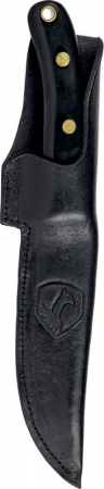 8.5" (21.59cm) overall. 4.25" (10.8cm) natural finish convex edge 440C stainless blade. Black paper micarta handle. Full tang. Lanyard hole. Black leather belt sheath. Boxed.