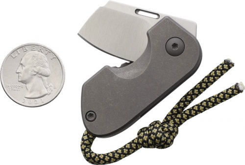 2" (5.08cm) closed. 1" (2.54cm) satin finish blade. Stonewash finish titanium handle. Lanyard hole. Boxed.