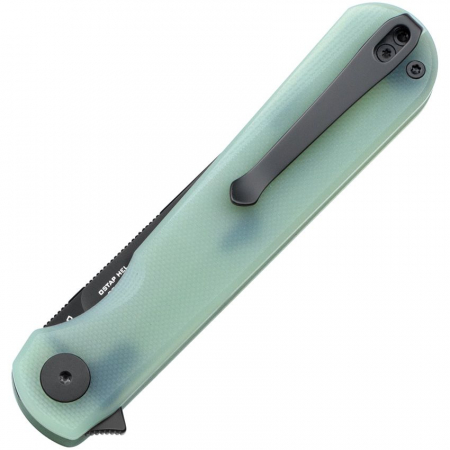 4.5" (11.43cm) closed. 3.5" (8.89cm) black PVD coated D2 tool steel blade. Jade G10 handle. Extended tang. Pocket clip. Boxed.