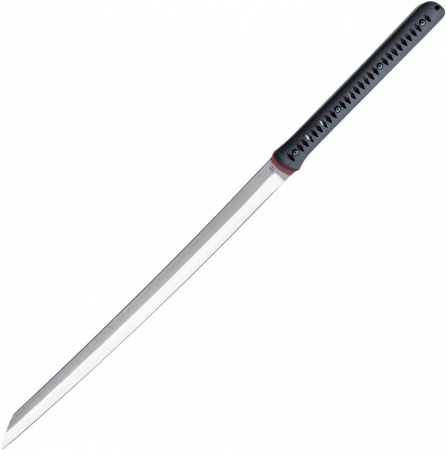 28.75" (73.03cm) overall. 18.25" (46.36cm) two-tone finish 1075HC steel blade. Black canvas micarta handle. Lanyard hole. Full tang. Red G10 liners. Black Kydex MOLLE compatible scabbard. Boxed.