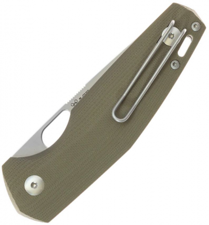 4.25" (10.8cm) closed. 3" (7.62cm) satin finish Scandi grind S90V steel blade. Green G10 handle. Thumb pull. Lanyard hole. Pocket clip. Boxed.