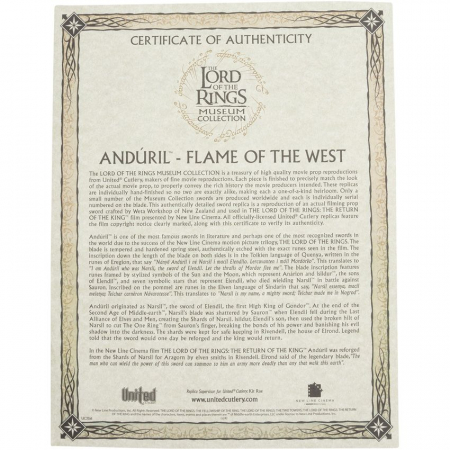 United Cutlery LOTR Museum Collection Anduril Sword UC3516