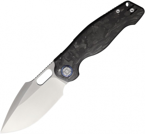 4.75" (12.07cm) closed. 3.63" (9.22cm) satin finish Elmax steel drop point blade. Shredded carbon fiber handle. Lanyard hole. Pocket clip. Thumb pull. Boxed.