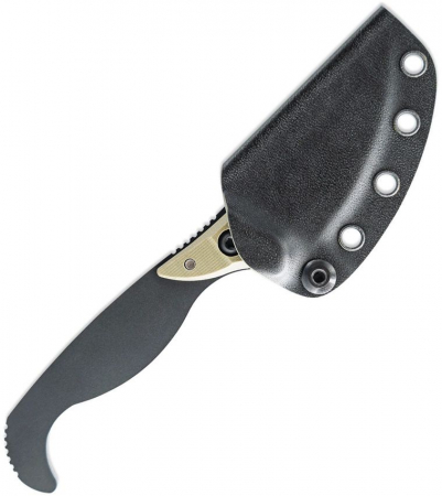 6.5" (16.51cm) overall. 2.5" (6.35cm) black coated 154CM stainless blade. Black skeletonized stainless handle. Full tang. Reverse edge hawkbill blade. Ranger green G10 grip. Black Kydex belt sheath. Boxed.