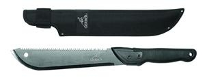 The Gator Machete sports our proprietary Gator rubber grip for ergonomic control while using either the fine edge blade on one side, or the saw on the other. The riveted, nylon sheath provides safe, durable transport. Tactile rubber grip Fine edge and saw blade