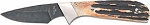 6 11/16" overall. 2 5/8" damascus steel drop point blade. Full tang. India stag bone handles. Genuine leather belt sheath