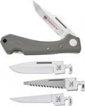 Case XX-Changer. 5" closed. Stainless interchangeable clip, fillet, saw and drop point blades. Light