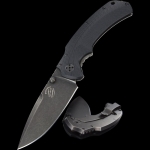 4.25" (10.8cm) closed. 3" (7.62cm) stonewash finish Becut steel blade. Black G10 handle. Extended ta