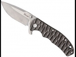 4.5" (11.43cm) closed. 3.5" (8.89cm) stonewash finish S35VN stainless drop point blade. Gray titaniu