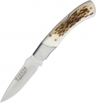3.75" (9.53cm) closed. 3" (7.62cm) satin finish 14C28N Sandvik stainless blade. Stag bone handle. Bo