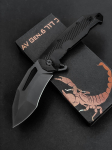 4.75" (12.07cm) closed. 3.5" (8.89cm) black DLC coated partially serrated D2 tool steel drop point b